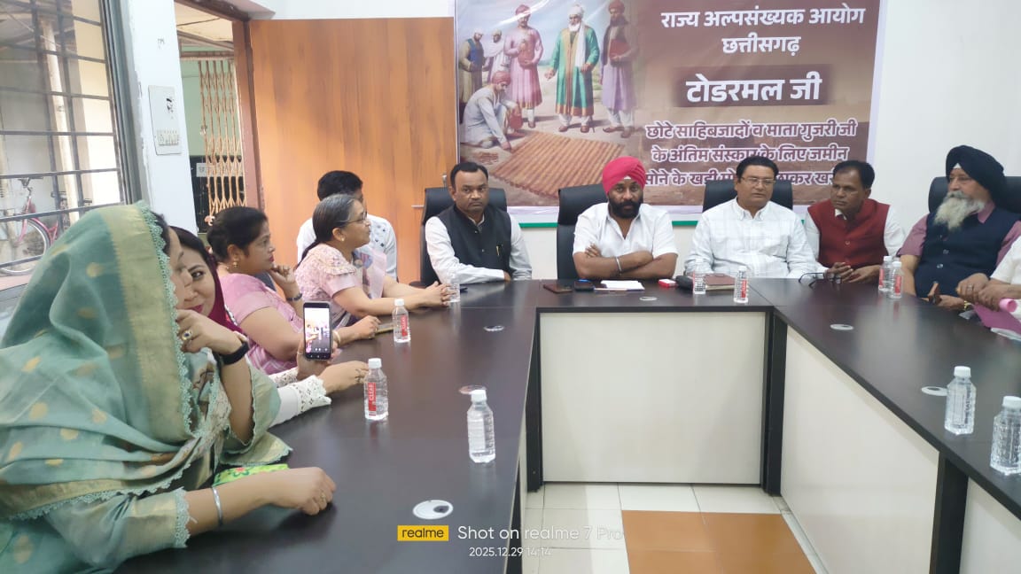 रायपुर (खबरगली) छत्तीसगढ़ राज्य अल्पसंख्यक आयोग द्वारा जैन-सिख एकता और सांप्रदायिक सौहार्द की एक अनुपम मिसाल पेश की गई। आयोग के कार्यालय में एक ऐतिहासिक 'शुकराना एवं श्रद्धांजलि' कार्यक्रम का आयोजन किया गया, जिसमें गुरु पुत्रों की शहादत के समय मानवता और धर्मनिष्ठा का अद्वितीय उदाहरण प्रस्तुत करने वाले दानवीर सेठ टोडरमल जैन के महान कार्यों को याद किया गया। उनके त्याग, सेवा भाव एवं ऐतिहासिक योगदान पर विस्तार से प्रकाश डाला गया तथा उन्हें भावभीनी श्रद्धांजलि अर्पित की गई।