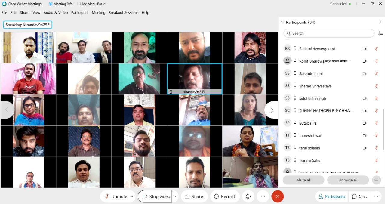 प्रदेश संयोजक श्री राजेश अवस्थी ने सभी गतिविधियों की जानकारी देते हुए जिला संयोजकों से जल्द ही कार्यकारिणी बनाने की निर्देश दिए और कहा कि मंडलों से एक एक नाम जरूर शामिल करें। उन्होंने सभी सदयों से सक्रिय होकर सांस्कृतिक प्रकोष्ठ के कार्यों को गति देने की अपील की.