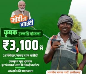 रायपुर (khabargali) भाजपा प्रदेश प्रवक्ता एवं किसान मोर्चा के पूर्व प्रदेश अध्यक्ष संदीप शर्मा ने एक बयान में कहा कि धान कीमत के अंतर राशि के भुगतान के लिए राज्य की भाजपा सरकार ने कृषक उन्नति योजना के अंतर्गत 12 हजार करोड़ का प्रवधान कर एक और मोदी गारंटी को पूरा कर दिया। छत्तीसगढ़ किसान एवं भाजपा किसान मोर्चा ने इसके लिए प्रसन्नता व्यक्त करते हुए प्रधानमंत्री नरेन्द्र मोदी एवं मुख्यमंत्री विष्णुदेव साय का आभार माना है।