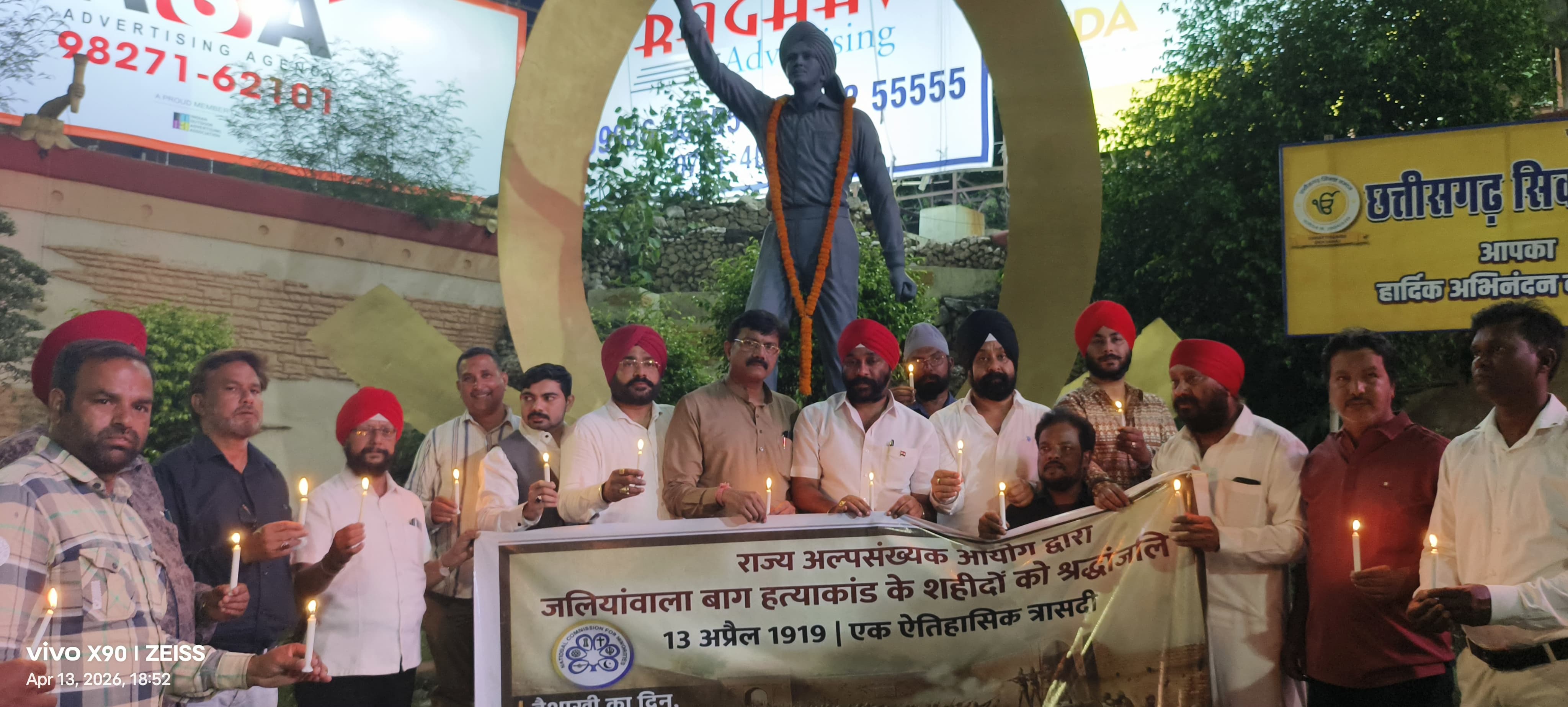 रायपुर (खबरगली ) जलियांवाला बाग हत्याकांड की 107वीं बरसी के अवसर पर छत्तीसगढ़ राज्य अल्पसंख्यक आयोग द्वारा राजधानी के भगत सिंह चौक में एक गरिमामय श्रद्धांजलि सभा का आयोजन किया गया। इस कार्यक्रम में सिक्ख समाज सहित विभिन्न समुदायों के नागरिकों, सामाजिक संगठनों और युवाओं ने बड़ी संख्या में हिस्सा लेकर अमर शहीदों को अपनी भावांजलि अर्पित की।