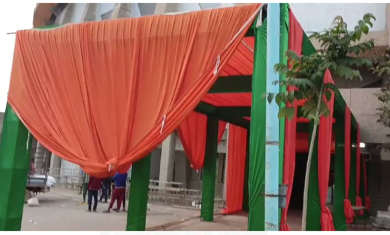 रायपुर (khabargali) छत्तीसगढ़ के मुख्यमंत्री विष्णुदेव साय के मंत्रिमंडल के शपथ ग्रहण को लेकर राजधानी के इंडोर स्टेडियम में तैयारी आज सोमवार को जोरों से शुरू हो गई है। भाजपा सूत्रों की मानें तो कल दो घंटे पहले भावी मंत्रियों को मोबाइल फोन पर दी जाएगी सूचना। लेकिन देर रात ये खबर लिखे जाने तक ये आयोजन कब होगा, कितने बजे होगा, इसे लेकर भाजपा आलाकमान, राज्य सरकार, राजभवन और जिला प्रशासन ने आधिकारिक रूप से घोषणा नहीं की।