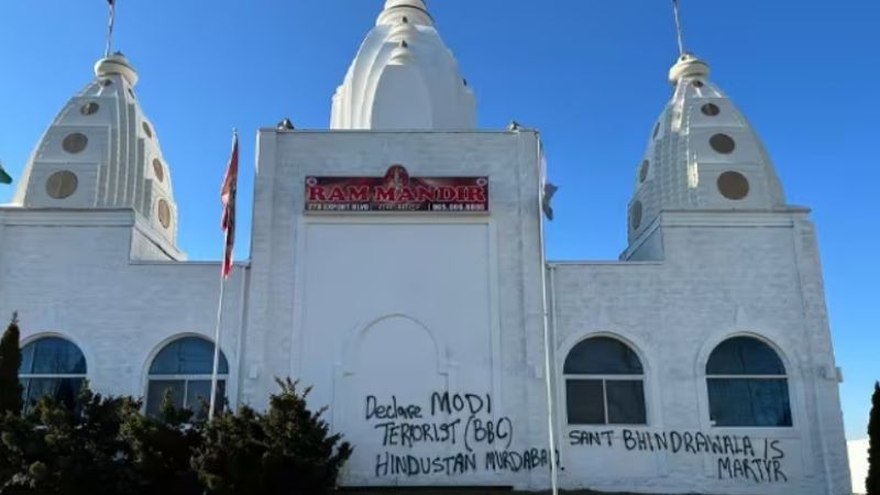 टोरंटो (khabargali) हाल ही में कनाडा स्थित ब्रैम्पटन में गौरी-शंकर मंदिर में तोड़फोड़ के बाद मिसिसॉगा स्थित राम मंदिर में खालिस्तानी चरमपंथियों ने दीवारों पर भारत विरोधी नारे लिखे और विरूपित किया। कनाडा स्थित भारतीय मिशन ने इस घटना की निंदा करते हुए कनाडाई अधिकारियों से अपराधियों के विरुद्ध त्वरित कार्रवाई को कहा है। घटना 13 फरवरी को हुई। भारत के वाणिज्य दूतावास ने ट्वीट किया, हम मिसिसॉगा में राम मंदिर की दीवारों पर भारत विरोधी नारे लिखकर धार्मिक भावनाओं को ठेस पहुंचाने की कड़ी निंदा करते हैं। हमने कनाडा के अधिकारियों से घटना की जांच का अनुरोध किया है।