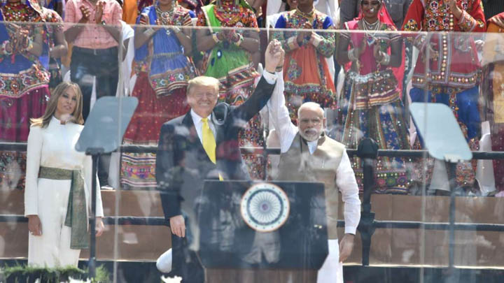 ट्रंप ने पीएम मोदी को लेकर कहा कि पीएम मोदी आप सिर्फ गुजरात के गौरव नहीं हैं, आप इस बात का सबूत हैं कि कड़ी मेहनत और निष्ठा के साथ, भारतीय कुछ भी हासिल कर सकते हैं, कुछ भी चाहते हैं। प्रधानमंत्री एक अविश्वसनीय वृद्धि की एक कहानी है। ट्रंप ने कहा कि 5 महीने पहले अमेरिका ने आपके महान प्रधानमंत्री का टेक्सास के एक विशाल फुटबॉल स्टेडियम में स्वागत किया और आज भारत ने अहमदाबाद में दुनिया के सबसे बड़े क्रिकेट स्टेडियम में हमारा स्वागत किया।