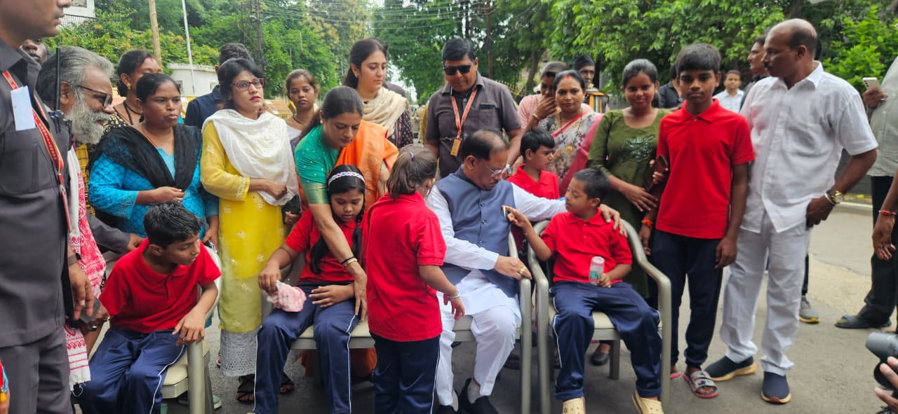 डोमा/ रायपुर (खबरगली) जतन दिव्यांग स्कूल डोमा के मासूम मूक-बधिर, मल्टीपल डिसेबिलिटी से जूझ रहे बच्चों को मुख्यमंत्री निवास में मुख्यमंत्री विष्णु देव साय जी से मिलने का अवसर मिला। मुख़्यमंत्री ने बच्चों से बात कि और उनके साथ खूब तश्वीरें खिचवाई। मुलाक़ात के दौरान एक बच्चे अभय ने मुख्यमंत्री जी का पेन उठा लिया। बच्चे की इस मासूमियत से प्रभावित होकर मुख्यमंत्री जी ने वह पेन सभी बच्चों को उपहार स्वरूप भेंट कर दिया। यह क्षण बच्चों के लिए जीवनभर याद रहने वाली अनमोल स्मृति बन गया।