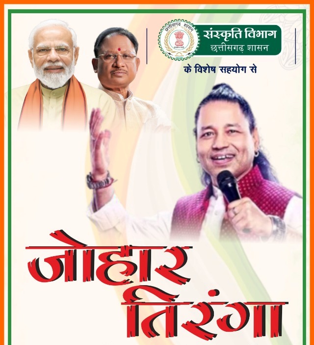 रायपुर (khabargali) मुख्यमंत्री विष्णु देव साय के मार्गदर्शन में छत्तीसगढ़ राज्य में स्वतंत्रता दिवस के उपलक्ष्य में आयोजित हर घर तिरंगा अभियान के तहत 13 अगस्त को रायपुर के बूढ़ा तालाब स्थित इंडोर स्टेडियम में जोहार तिरंगा कार्यक्रम का आयोजन होगा। मुख्यमंत्री श्री विष्णु देव साय की उपस्थिति में यह कार्यक्रम संध्या 6 बजे से शुरू होगा।