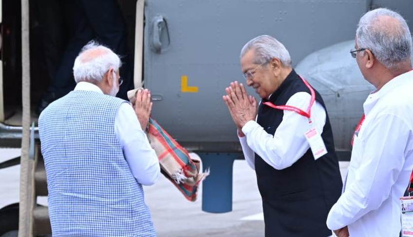 रायपुर (khabargali) प्रधानमंत्री श्री नरेन्द्र मोदी द्वारा छत्तीसगढ़ की राजधानी रायपुर में आज आयोजित समारोह में विभिन्न विकास परियोजनाओं के लोकार्पण, शिलान्यास और शुभारंभ के पश्चात उनकी रायपुर से वापसी पर राज्यपाल श्री विश्वभूषण हरिचंदन और मुख्यमंत्री श्री भूपेश बघेल ने उन्हें भावभीनी बिदाई दी।