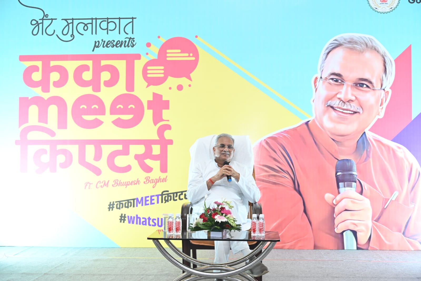 रायपुर (khabargali) मुख्यमंत्री भूपेश बघेल ने शनिवार शाम सोशल मीडिया क्रिएटर्स से भेंट-मुलाकात की। राजधानी रायपुर के एक हॉटल में ‘कका मीट क्रिएटर्स‘ नाम से आयोजित कार्यक्रम में वे प्रदेशभर से आए सोशल मीडिया क्रिएटर्स से रूबरू हुए। इस दौरान सोशल मीडिया क्रिएटर्स ने मुख्यमंत्री से कई रोचक सवाल भी पूछे और मुख्यमंत्री ने अपने अंदाज़ में उनके जवाब भी दिए।