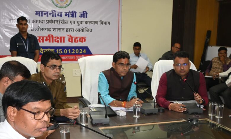 रायपुर (khabargali) छत्तीसगढ़ शासन के राजस्व एवं आपदा प्रबंधन और खेल एवं युवा कल्याण मंत्री श्री टंकराम वर्मा ने आज संयुक्त जिला कार्यालय बलौदाबाजार भाटापारा में जिले के विभिन्न विभागों के कामकाज की विस्तृत समीक्षा की। इस दौरान नगर पालिका परिषद अध्यक्ष श्री चित्तावर जायसवाल, कलेक्टर श्री चंदन कुमार, वरिष्ठ पुलिस अधीक्षक श्री दीपक झा, डीएफओ श्री मयंक अग्रवाल उपस्थित रहे।