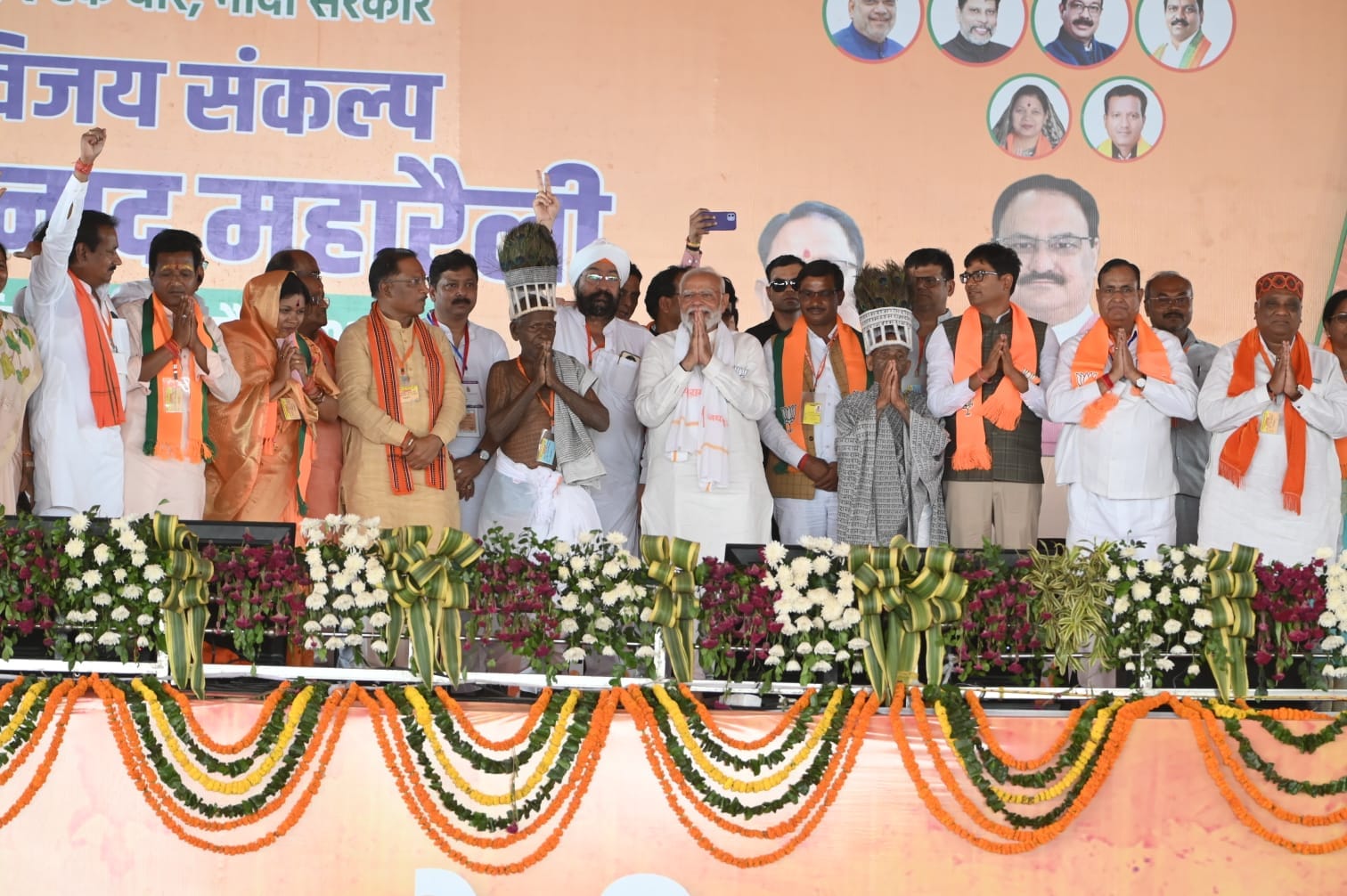 प्रधानमंत्री नरेन्द्र मोदी ने छत्तीसगढ़ की विष्णु देव साय सरकार के विषय में कहा कि किसानों का धान एम एस पी पर खरीदी की गई। दो वर्षों का बकाया बोनस दिया।तेंदुपत्ता संग्राहकों को प्रति मानक बोरा, महिलाओं को महतारी वंदन योजना का लाभ और 18 लाख प्रधानमंत्री आवास पर स्वीकृति दी गई है। छत्तीसगढ़ में कांग्रेस कहती हैं मोदी का सिर फोड़ देंगे इतना ही नहीं मेरी स्वर्गीय मां को भी अपशब्द बोले। कांग्रेस ने कभी भी पिछड़ा वर्ग को संवैधानिक दर्जा नहीं दिया मेडिकल में आरक्षण नहीं दिया। आज छत्तीसगढ़ में उप मुख्यमंत्री पिछड़ा वर्ग से हैं और पड़ोसी राज्य मध्यप्रदेश में मुख्यमंत्री पिछड़ा वर्ग से आते हैं। भारतीय जनता पार्टी ने जनजातीय के लिए जन-मन जैसी योजनाएं चलाई।