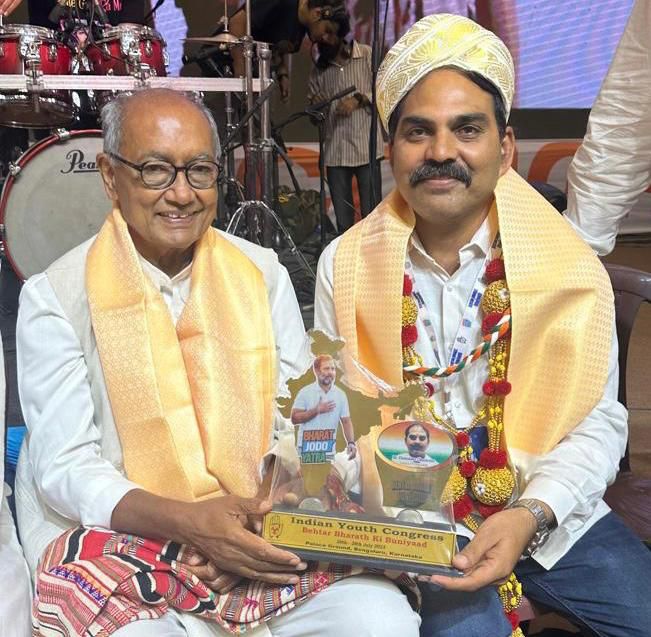रायपुर (khabargali) छत्तीसगढ़ प्रदेश कांग्रेस कमेटी पिछड़ा वर्ग रायपुर के प्रदेश अध्यक्ष डॉ.चौलेश्वर बेंगलूर ( कर्नाटक ) में आयोजित अखिलभरतीय राष्ट्रीय युवक कांग्रेस द्वारा आयोजित महाअधिवेशन में हुए सम्मानित। बेहतर भारत की बुनियाद की नीव रखने के मकसद से अखिलभारतीय राष्ट्रीय युवक कांग्रेस द्वारा कर्नाटक के बेंगलूर में तीन दिवसीय 26 जुलाई 2023 से 28 जुलाई 2023 तक सबसे बड़ा महाअधिवेशन का कार्यक्रम आयोजित था तीन दिनों तक चलने वाले इस महाअधिवेशन में देश में फैली नफरत, मंहगाई,बेरोजगारी,और तमाम मुद्दों के खिलाफ रखी गई संघर्ष की बुनियाद ।