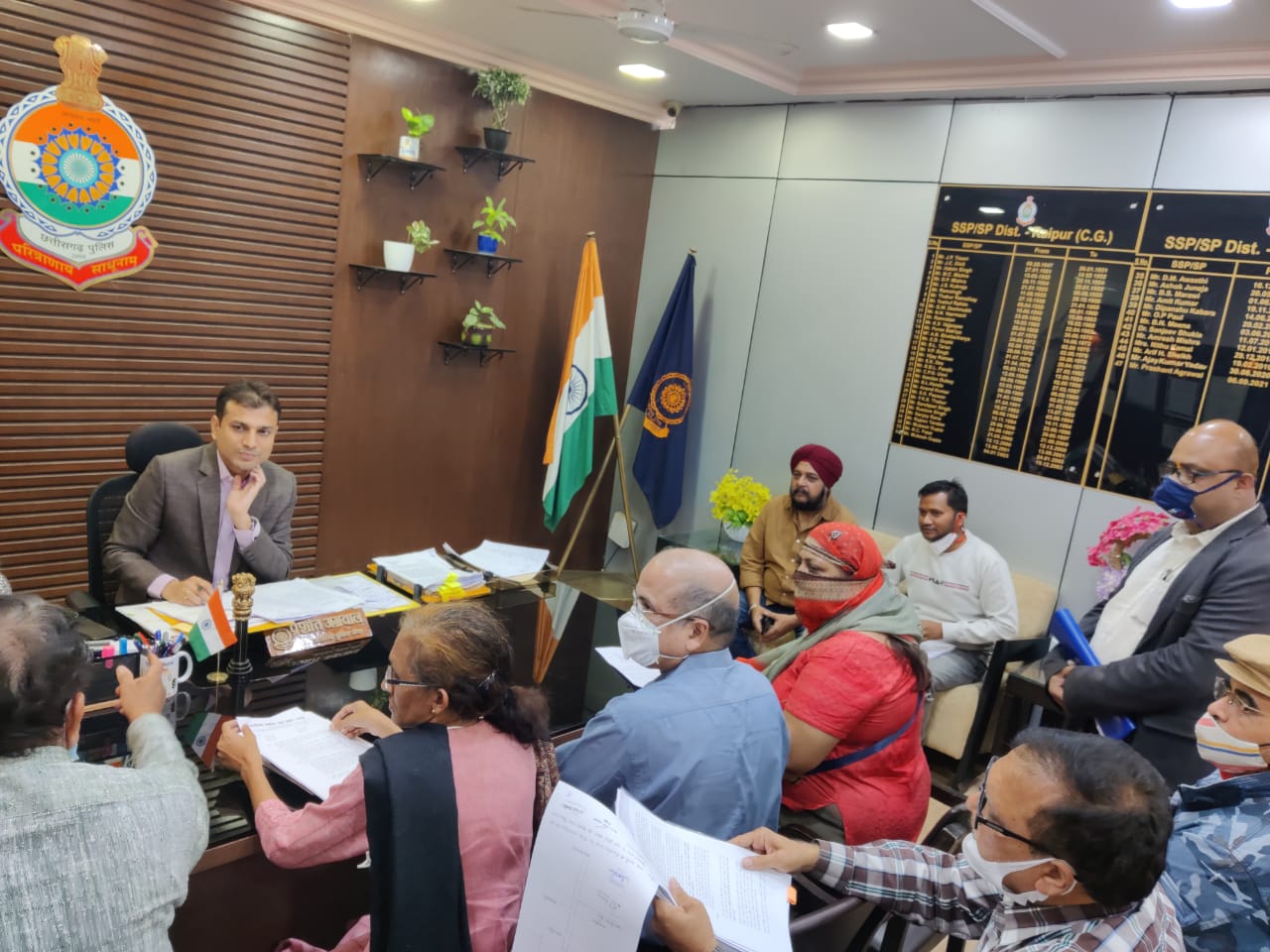 समिति की तरफ से डॉ राकेश गुप्ता, विश्वजीत मित्रा, हरजीत जुनेजा, मंजीत कौल बल, डॉ संजय शुक्ला, जीवेश चौबे, मनीष पटेल, रविंद्र कुमार, संदीप कुमार यादव, रियाज अंबर, बाल कृष्ण अय्यर, इंद्रप्रस्थ रायपुरा से मनीष पांडे आयुषी पांडे सुनीला पांडे अक्षत पांडे ने ज्ञापन दिया .