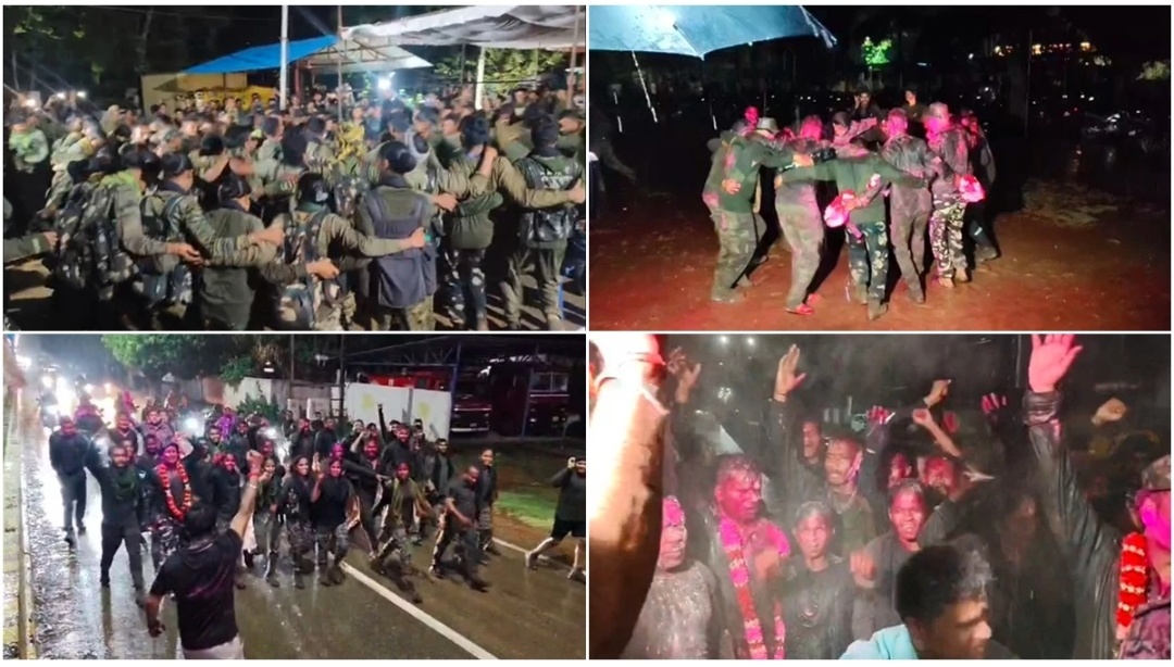 नारायणपुर (खबरगली) छत्तीसगढ़ के नारायणपुर में माओवादियों के प्रमुख लीडर बसव राजू और उसके साथियों को मार गिराने वाले सुरक्षाबल जवान जंगल से वापस शहर लौटे। देर रात इन्होंने अपनी कामयाबी का जश्न मनाया और बरसते पानी में जमकर नाचे। डीआरजी जवानों ने एक-दूसरे को गुलाल लगाकर जश्न मनाया।डीआरजी जवानों ने सफलता का उत्सव सारी रात नाच-गाकर मनाया। तेज बारिश भी इस उत्सव में बाधा नहीं डाल पाई। जवान बीच सड़क में उतर कर भारत माता के जयकारे लगाए।एक समय था जब बस्तर में बड़े हमले के बाद माओवादी शवों पर नाचकर उत्सव मनाते थे। झीरम में कांग्रेस नेता महेंद्र कर्मा को मारकर भी ऐसा किया था। अब बस्तर में परिस्थिति बदल चुकी है। लगातार माओवादियों को मारा जा रहा है, और जवान अब नाचकर अपनी जीत का उत्सव मना रहे हैं।