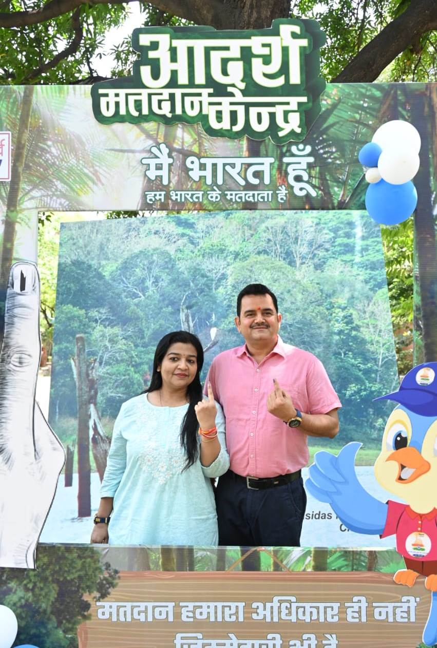 रायपुर (khabargali) लोकसभा निर्वाचन 2024 के तीसरे चरण के मतदान के दौरान मुख्यमंत्री के सचिव एवं जनसंपर्क सचिव श्री पी. दयानंद ने अपनी धर्मपत्नी श्रीमती शैलजा के साथ देवेंद्र नगर ऑफिसर्स कॉलोनी रायपुर के आदर्श मतदान केंद्र क्रमांक 52 में अपने मताधिकार का प्रयोग किया। उन्होंने कहा कि लोकतंत्र में अपनी भागीदारी सुनिश्चित करने के लिए सभी नागरिकों को निर्भिक, स्वतंत्र एवं निष्पक्ष होकर अपने मताधिकार का प्रयोग करना चाहिए।