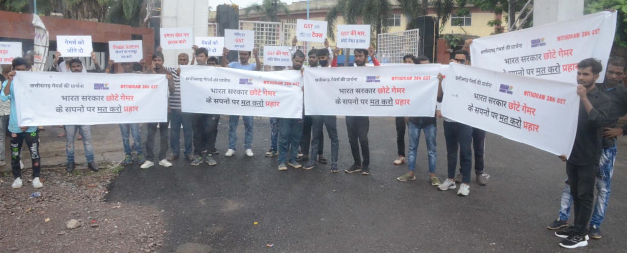 रायपुर (khabargali) ऑनलाइन गेमिंग को कैसिनो और हॉर्स रेसिंग जैसा मानते हुए इस पर 28 प्रतिशत जीएसटी लगाने के फैसले से निराश छत्तीसगढ़ के ऑनलाइन गेमर्स इस फैसले को वापस लेने की मांग के साथ 'इंडियन गेमर्स यूनाइटेड' के बैनर तले अन्य शहरों के गेमर्स के साथ एकजुट हुए हैं। कई गेमर्स रायपुर के इनडोर स्टेडियम पर एकत्र हुए और नीति निर्माताओं से ऑनलाइन गेमिंग को ज्यादा टैक्स फ्रेंडली बनाने की मांग के साथ शांतिपूर्ण प्रदर्शन किया। गेमर्स ने बैनर और प्लेकार्ड्स के साथ नारे लगाए और नीति निर्माताओं का ध्यान इस ओर आकर्षित करने का प्रयास किया।