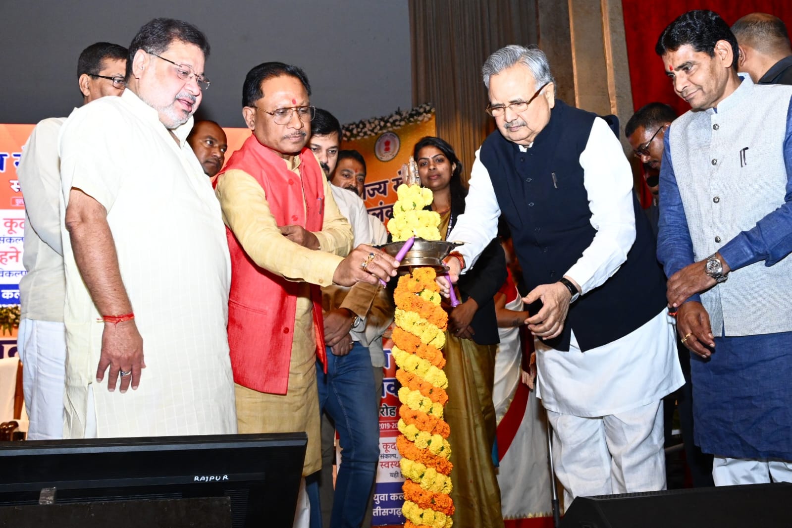 रायपुर (khabargali) छत्तीसगढ़ में एक बार फिर से राज्य खेल अलंकरण समारोह की शुरुआत हो गई है। मुख्यमंत्री श्री विष्णु देव साय राज्य खेल अलंकरण समारोह 2024 में शामिल होने पंडित दीनदयाल उपाध्याय ऑडिटोरियम पहुंचे और सभी अतिथियों ने दीप प्रज्जवलन कर समारोह का शुभारंभ किया। कार्यक्रम में छत्तीसगढ़ के विधानसभा अध्यक्ष डॉ रमन सिंह,खेल मंत्री श्री टंकराम वर्मा,कृषि मंत्री श्री रामविचार नेताम, रायपुर सांसद सुनील सोनी , विधायक सर्व श्री राजेश मूणत, अनुज शर्मा, मोती राम साहू, इंद्र कुमार साहू भी उपस्थित है।