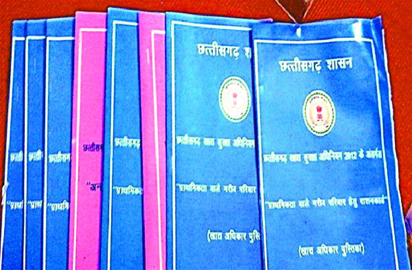 खाद्य विभाग से प्राप्त जानकारी के अनुसार राज्य में प्राथमिकता वाले 45 लाख 5 हजार 867 परिवारों को, अंत्योदय के 14 लाख 21 हजार 585 परिवारों को तथा 38 हजार 645 निराश्रितों को राशन कार्ड जारी किया गया है। कार्ड धारी नि:शक्तजन की संख्या 11 हजार 483 तथा एपीएल सामान्य परिवार वाले राशन कार्ड धारी की संख्या 14 लाख 89 हजार 371 है। गौरतलब है कि यह उल्लेखनीय है कि राज्य में पात्र छूटे हितग्राहियों को नियमानुसार राशन कार्ड जारी किए जा रहा है।